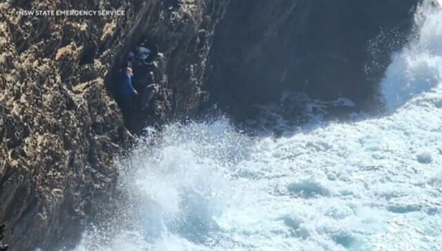 حوصرت مجموعة من الزوار على جرف على طول الساحل الشرقي لأستراليا عندما ارتفع المد أثناء نزهتهم الصباحية على الشاطئ.