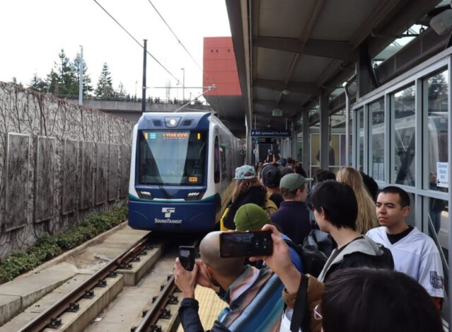 تخيّل في ذهنك كمّ الحشود التي ستتوافد للاحتفال بافتتاح خط القطار الخفيف في سياتل. ثمّ تخيّل ضعف هذا العدد. هذا يُقارب الحشود التي احتشدت يوم السبت لركوب أحد القطارات الأولى التي تعبر الجسر المتحرك I-90، حيث أطلقت شركة ساوند ترافل أخيرًا الخدمة على الخط 2 بالكامل بين ريدموند ولينوود.